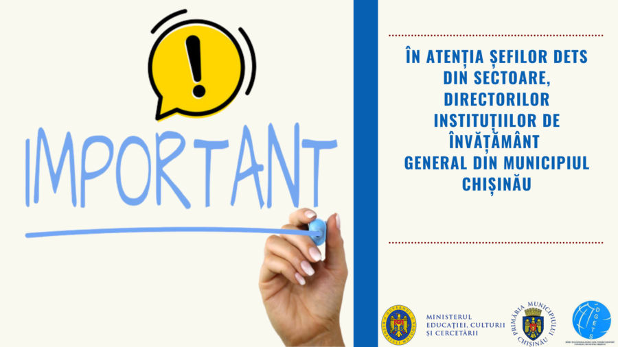 În atenția șefilor DETS din sectoare, Directorilor instituțiilor de învățământ general din municipiul Chișinău