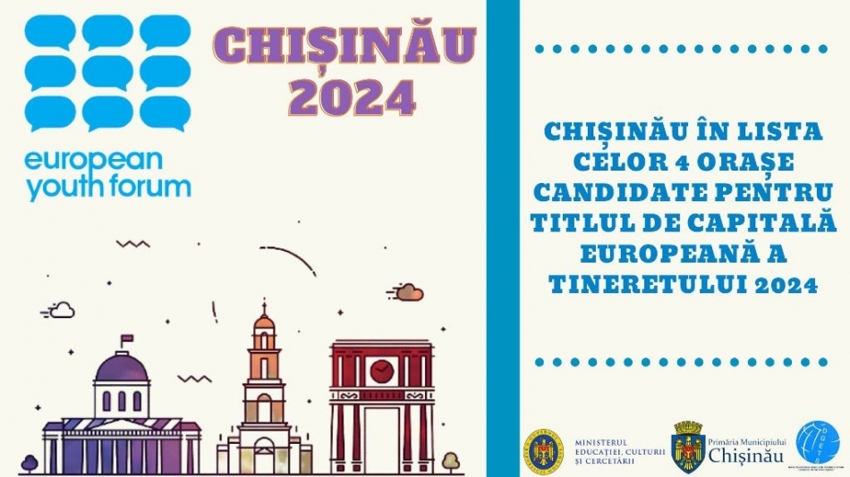 E de menționat ca la începutul lunii martie, curent, Chișinăul a fost inclus în lista celor 4 orașe candidate pentru titlul de capitală Europeană a Tineretului 2024.