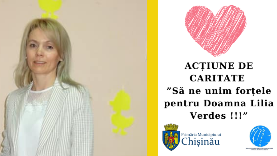 Chemăm la solidaritate toți părinții, colaboratorii instituției noastre, partenerii educaționali, toți oamenii cu inimă mare să ne unim forțele și să contribuim la susținerea familiei Verdes, care se află în aceste moment într-o situație grea atât financiară, cât și morală. Să ne unim pentru a o ajuta pe Doamna Lilia Verdes.