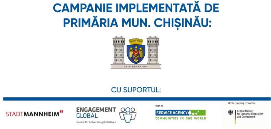 Campania „Pentru Viață. Pentru Sănătate” din cadrul proiectului „Împreună împotriva COVID-19 – Mannheim – Chișinău – Cernăuți, este implementată de Primăria municipiului Chișinău, cu suportul Orașului Mannheim, Engagement Global, Service Agency, Communities in One World și Ministerul Federal pentru Cooperare și Dezvoltare Economică.