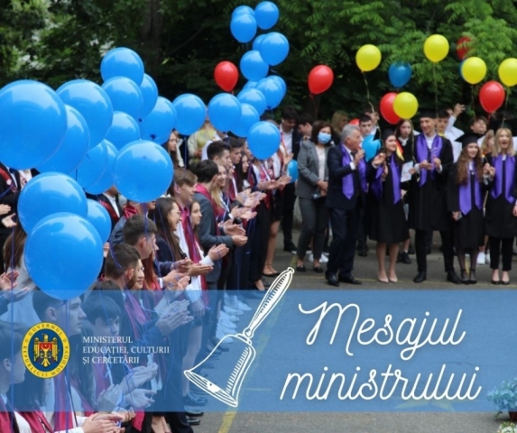 Dragi absolvenți, cu toate incertitudinile cu care am fost nevoiți să ne confruntăm în acest an pandemic, anul de studii s-a încheiat. Știm că a fost greu pentru voi, mai ales sub presiunea responsabilității susținerii examenelor naționale de absolvire. De aceea vreau să am încredere în voi, noua generație, că veți obține rezultate bune la examene și că această treaptă a vieții voastre, din păcate marcată de pandemia Covid-19, să vă facă mai puternici și mai determinați spre a construi o lume mai bună.