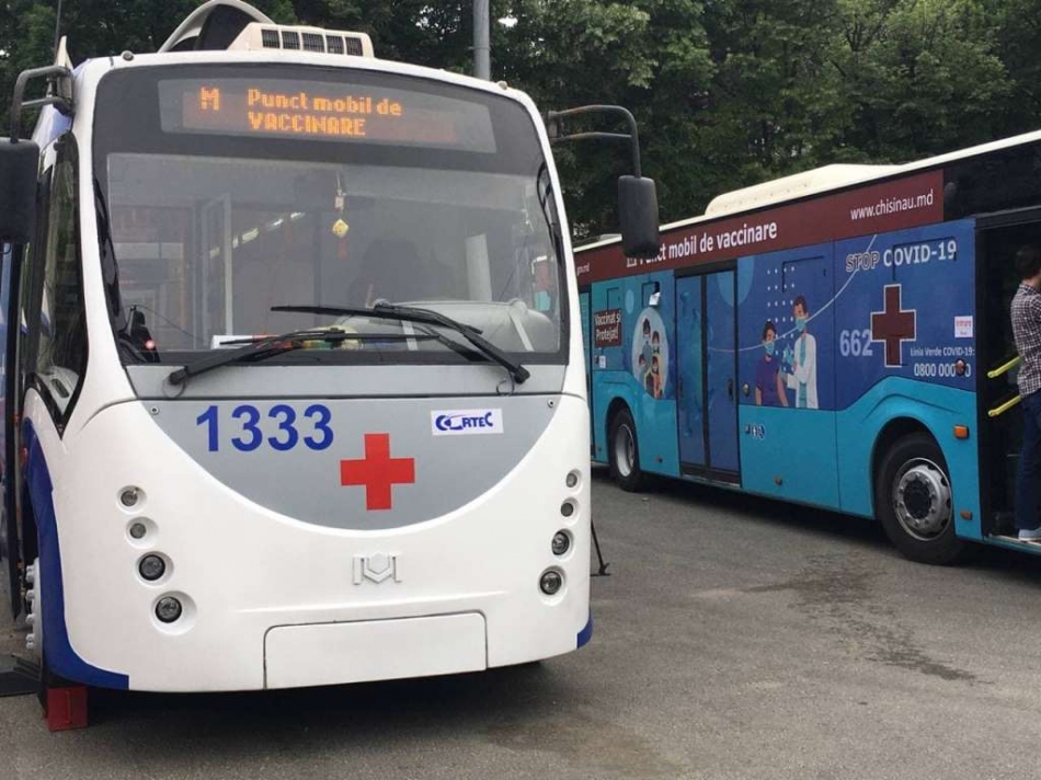 Amplasarea punctelor mobile pentru vaccinarea antiCOVID-19, un troleibuz și un autobuz: 24 iunie 2021