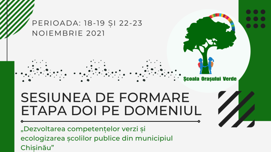 Direcția Generală Educație Tineret și Sport a Consiliului municipal Chișinău invită doritorii de a participa la Sesiunea de formare etapa doi pe domeniul „Dezvoltarea competențelor verzi și ecologizarea școlilor publice din municipiul Chișinău”, 18 – 23 Noiembrie 2021