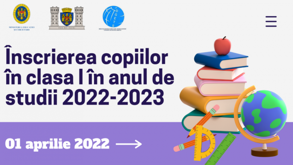 Direcția Generală Educație, Tineret și Sport a Consiliului municipal Chișinău informează că începând cu 01 aprilie 2022 părinții pot depune actele on-line pentru înscrierea copiilor în clasa I-a pe platforma: https://escoala.chisinau.md/
