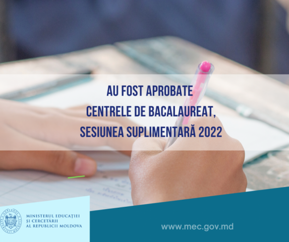 În perioada 18-22 iulie, în conformitate cu Programul de desfășurare a sesiunii de examene 2022, va avea loc sesiunea suplimentară din cadrul examenului național de bacalaureat.