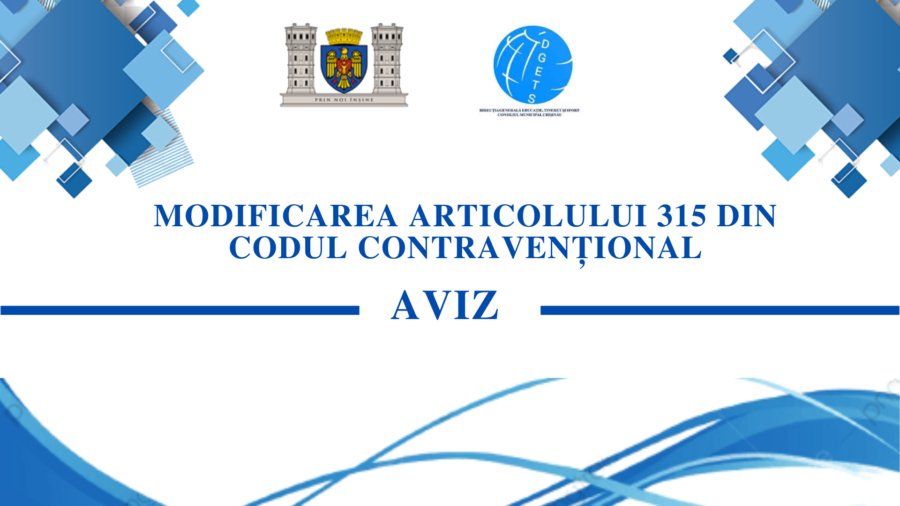Direcția Generală Educație, Tineret și Sport, Primăria municipiului Chișinău aduce la cunoștință despre modificarea Articolului 315 din Codul Contravențional, ce întră în vigoare din data de 20.07.2022