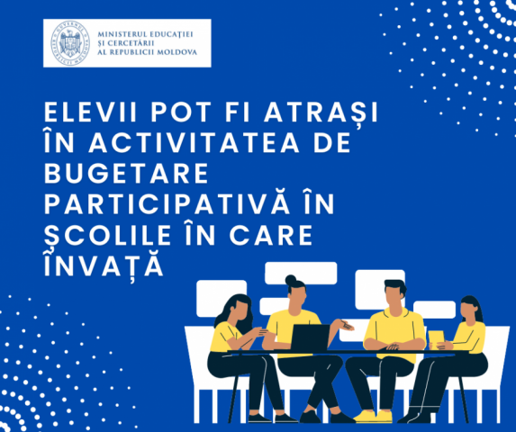 Elevii din instituțiile de învățământ preuniversitar din Republica Moldova pot participa la luarea de decizii în repartizarea unei părți din bugetul școlii pentru problemele identificate în instituția în care învață.