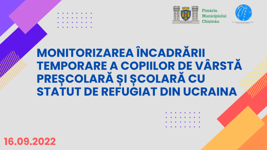 Monitorizarea încadrării temporare a copiilor de vârstă preșcolară și școlară cu statut de refugiat din Ucraina