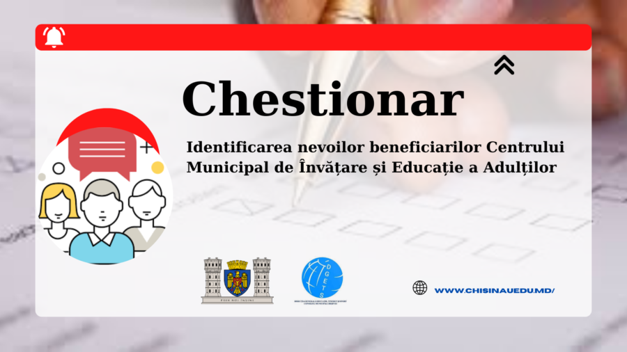 În acest context vă informăm că în conformitate cu prevederile Deciziei Consiliului Municipal Chișinău nr. 8/7 din 07.07.2022, a fost fondat Centrul Municipal de Învățare și Educație a Adulților.