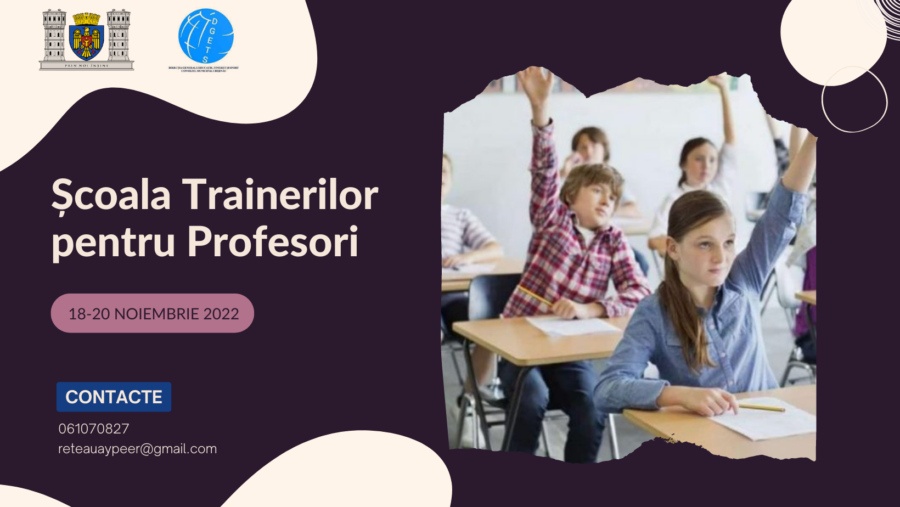 Scopul Școlii Trainerilor pentru Profesori este de a oferi cadrelor didactice (profesori din Moldova și profesori refugiați din Ucraina încadrați în procesul educațional) din instituțiile de învățământ pre-universitar din țară posibilitatea să parcurgă un curs de instruire în domeniul tehnicilor de comunicare eficientă cu tinerii, și să devină Trainer Național Y-PEER pentru tineri pe subiecte precum: