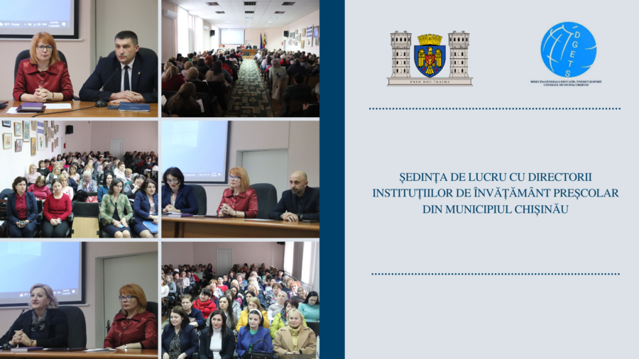 Astăzi, 22 noiembrie 2022, Direcția Generală Educație Tineret și Sport a Primăriei municipiului Chișinău a organizat ședința de lucru cu directorii instituțiilor de învățământ preșcolar din municipiul Chișinău. Scopul fiind menținerea unui dialog continuu cu instituțiile de învățământ preșcolar și elucidarea problemelor.