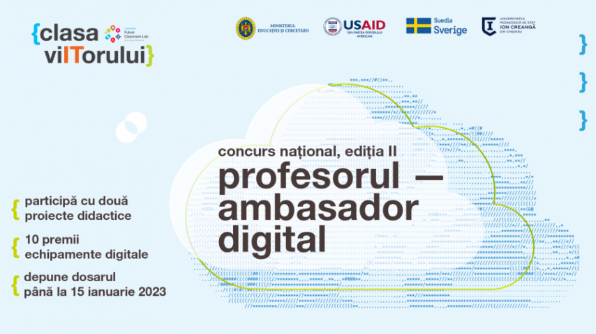 Concursul „Profesorul – Ambasador Digital” este organizat cu sprijinul financiar al USAID și Suedia prin Proiectul Tehnologiile Viitorului, în parteneriat cu Ministerul Educației și Cercetării.