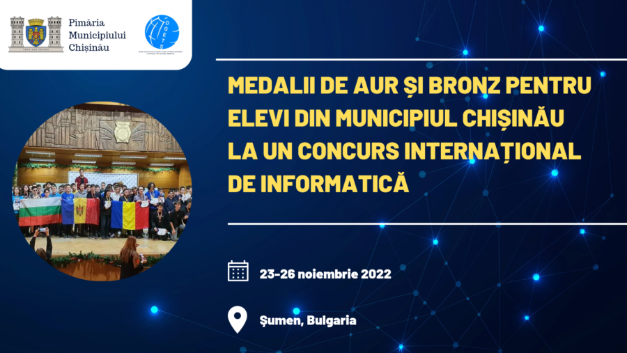 ℹ️Trei elevi din municipiul Chișinău au fost premiați în cadrul Concursului Internaţional ,,International Autumn Tournament in Informatics”. Acesta s-a desfășurat în or. Şumen, Bulgaria, în perioada 23 – 26 noiembrie 2022.