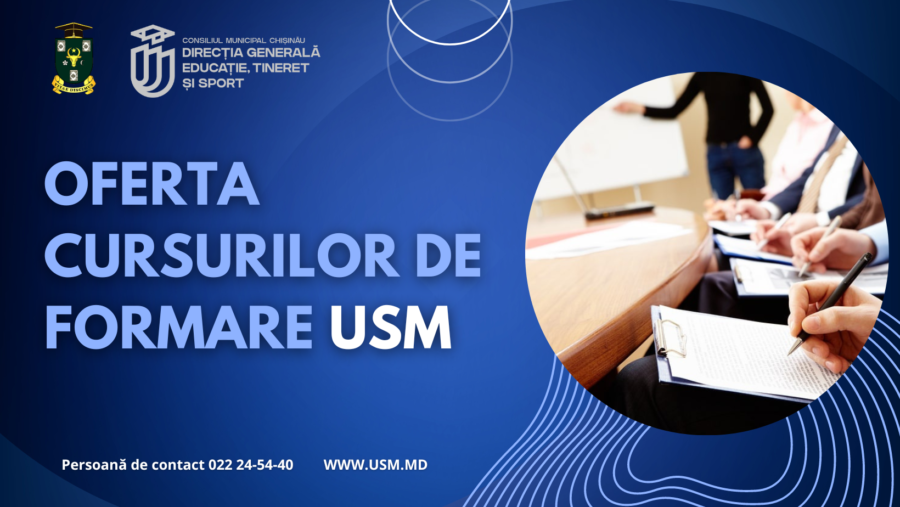 Direcția Generală Educație, Tineret și Sport a Consiliului municipal Chișinău Vă aduce la cunoștință oferta stagiilor de formare profesională continuă a cadrelor didactice și de conducere din instituțiile preuniversitare pentru anul 2023, propus de Centrul Formare Continuă din cadrul Universității de Stat din Moldova.