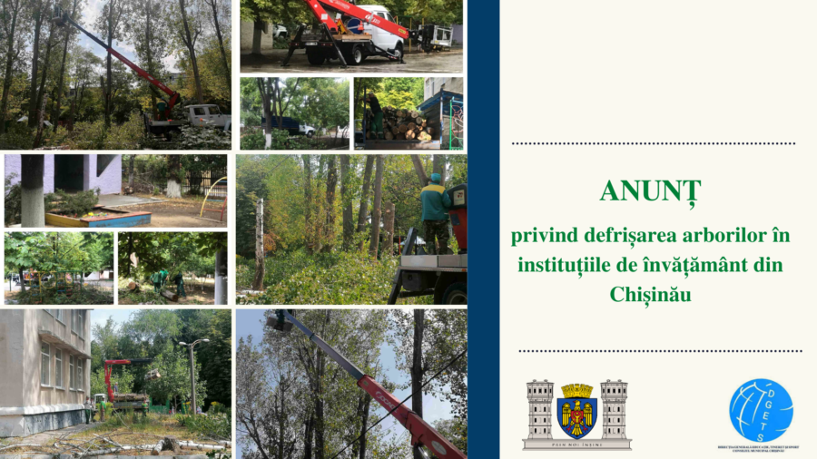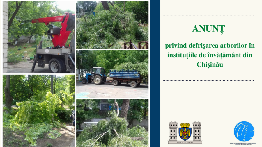 Direcția Generală Educație Tineret și Sport, Primăria municipiului Chișinău în comun cu serviciile municipale specializate continuă defrișarea copacilor uscați și bolnavi de pe teritoriul instituțiilor educaționale din...
