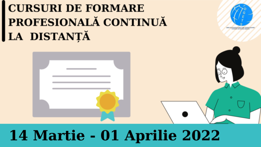 Direcția Generală Educație, Tineret și Sport a Consiliului municipal Chișinău Vă aduce la cunoștință oferta cursurilor de formare profesională continuă pentru anul 2022, propus de Catedra Psihopedagogie și...