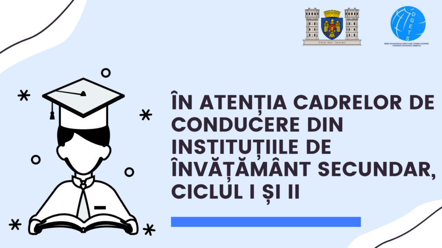 Direcția Generală Educație, Tineret și Sport a Consiliului municipal Chișinău solicită identificarea doritorilor de a participa la formarea profesională continuă, online, privind implementarea Standardelor de competență profesională ale cadrelor...