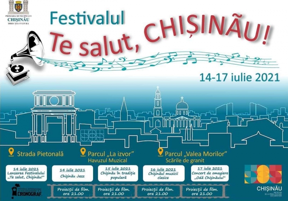 Primăria municipiului Chișinău informează că miercuri, 14 iulie 2021, în capitală se dă startul Festivalului „Te salut, Chișinău!”, ediția I, care se va desfășura timp de 4...