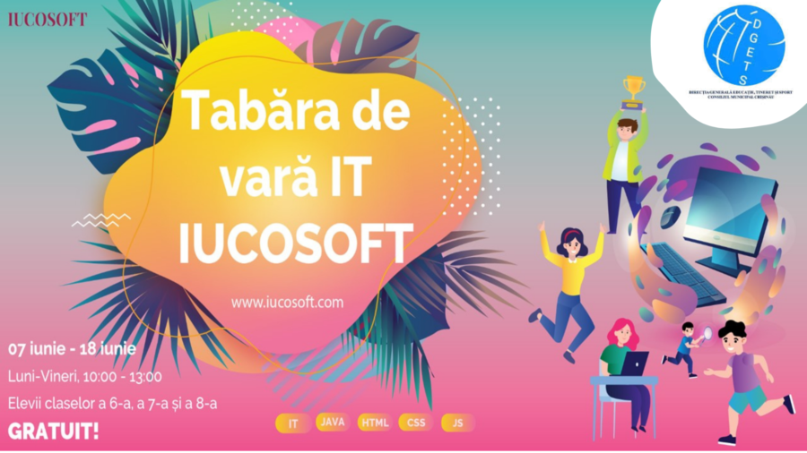Tabăra de vară IT IUCOSOFT pentru elevi (ONLINE) În acest an tabăra de vară invită copilașii ingenioși, isteți, creativi, pasionați de tehnică, să deschidă îndrăzneț porțile „Regatului...