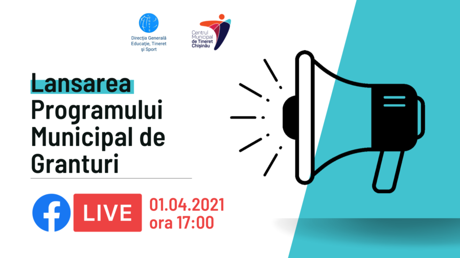 Direcția Generală Educație, Tineret și Sport a Consiliului municipal Chișinău în colaborare cu Centrul Municipal de Tineret Chișinău lansează Programul municipal de Granturi – 2021 pentru organizațiile de tineret și...