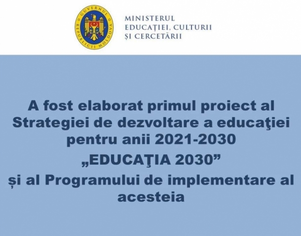 Primul Proiect al Strategiei de dezvoltare a educaţiei pentru anii 2021-2030 „EDUCAŢIA 2030” și al Programului de implementare al acesteia a fost discutat astăzi, 3 martie, în cadrul...