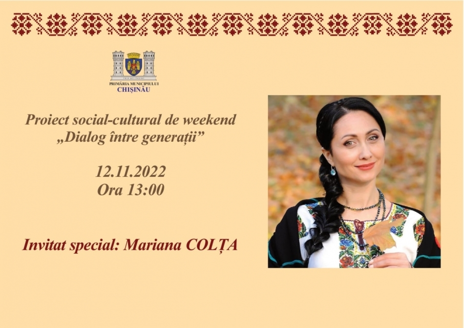 Primăria Municipiului Chișinău invită locuitorii capitalei, sâmbătă, 12 noiembrie 2022, ora 13:00, în Grădina Publică „Ștefan cel Mare și Sfânt”, la un spectacol muzical, dedicat persoanelor de...
