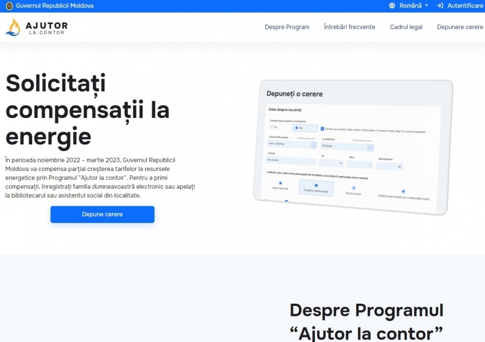 Din 12.10.2022 a devenit funcțională platforma online compensatii.gov.md care permite înregistrarea și prelucrarea cererilor pentru compensarea cheltuielilor pentru utilizarea energiei de către consumatorii casnici. La fel, toate detaliile, informațiile...