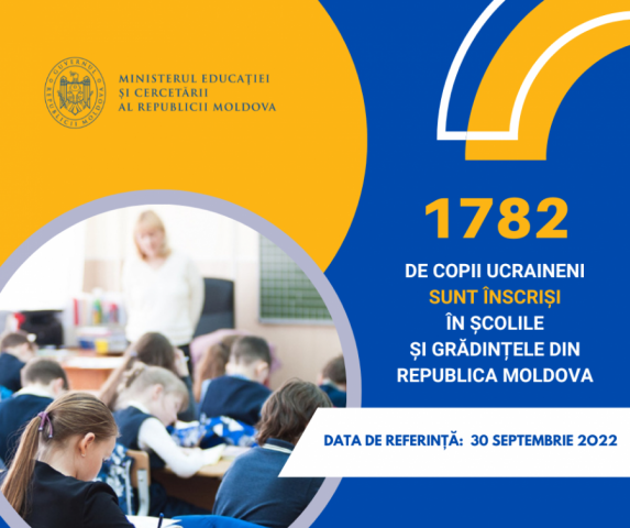 Datele centralizate de Ministerul Educației și Cercetării, comunicate de Organele locale de specialitate în domeniul învățământului (OLSDÎ), arată că, la data de 30 septembrie 2022, 1782 de...