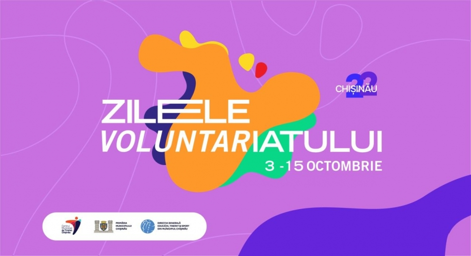 Primăria Municipiului Chișinău informează că în perioada 03 – 15 octombrie 2022, la Chişinău sunt organizate Zilele Voluntariatului, cu sloganul „Suntem Tari! Suntem Voluntari!” Astfel, toți tinerii...