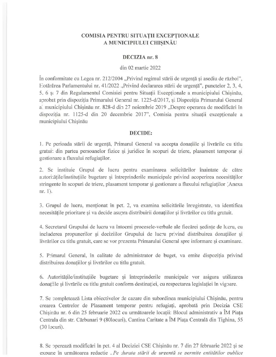 Decizia CSE Nr. 8 din 02.03.2022 by Primăria Chișinău