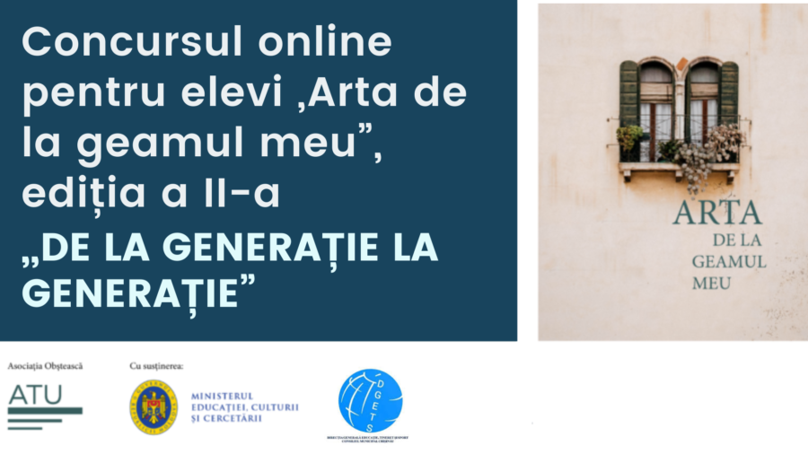 Asociația Obștească „ATU” anunță lansarea concursului online pentru elevi „Arta de la geamul meu”, ediția a II-a, cu genericul „De la generație la generație”. În era tehnologiilor...