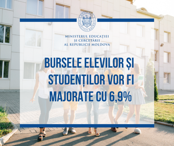 Ministrul Educației și Cercetării, Anatolie Topală, a prezentat în cadrul ședinței Executivului un proiect de hotărâre care prevede majorarea burselor pentru elevi și studenți cu 6,9%. ...