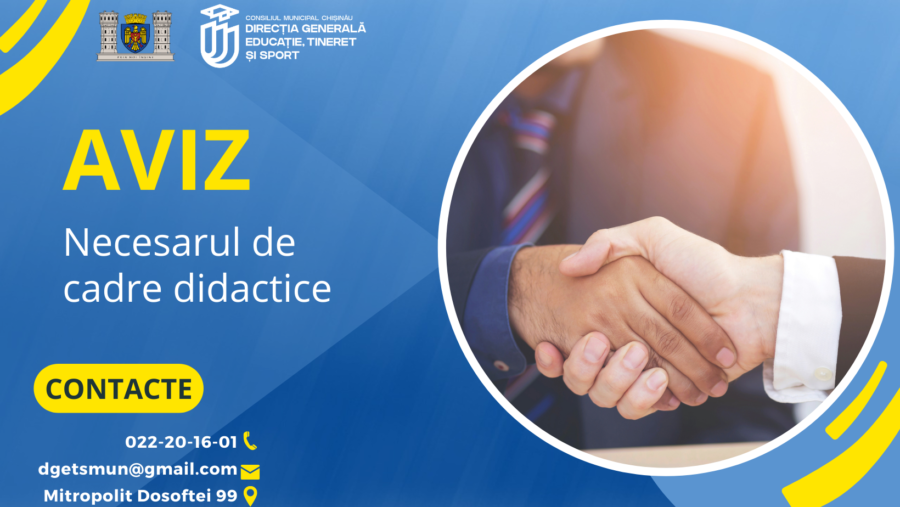 În temeiul Circularei Ministerului Educației și Cercetării nr.03/2-09/398 din 26.01.2023, în scopul asigurării cu cadre didactice a instituțiilor de învățământ general pentru anul de studii 2023-2024, Direcția...