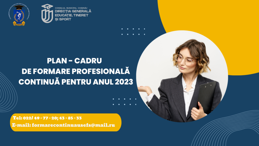 Direcția Generală Educație, Tineret și Sport a Consiliului municipal Chișinău Vă aduce la cunoștință PLAN – CADRU de formare profesională continuă în domeniile Științe ale educației și Științe...
